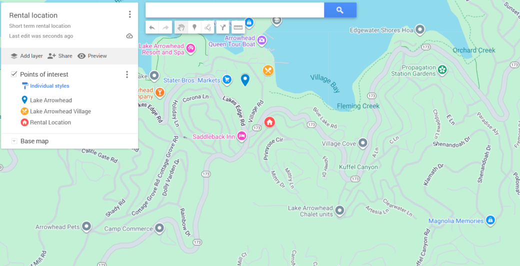 Drive up Mittry Lane which is the road behind Windermere Real Estate, and continue up the hill. You will see a street sign, Snowflower Rd and you will turn right. Our cabin is on the corner of Mittry and Snowflower.